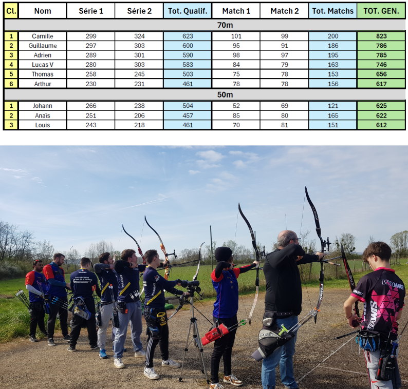 En ce Dimanche 18 Mai, l’équipe des Archers du Val de l’Ognon (composée d’Adrien Humbert, Camille Andrianarison, Guillaume Martin et Lucas Vaney) avait rendez-vous à Villeurbanne pour la 2e étape de 2e Division Nationale (D2, groupe 2). Premier ex aequo après de la 1ère étape, ils avaient à cœur de confirmer durant cette nouvelle journée de compétition.